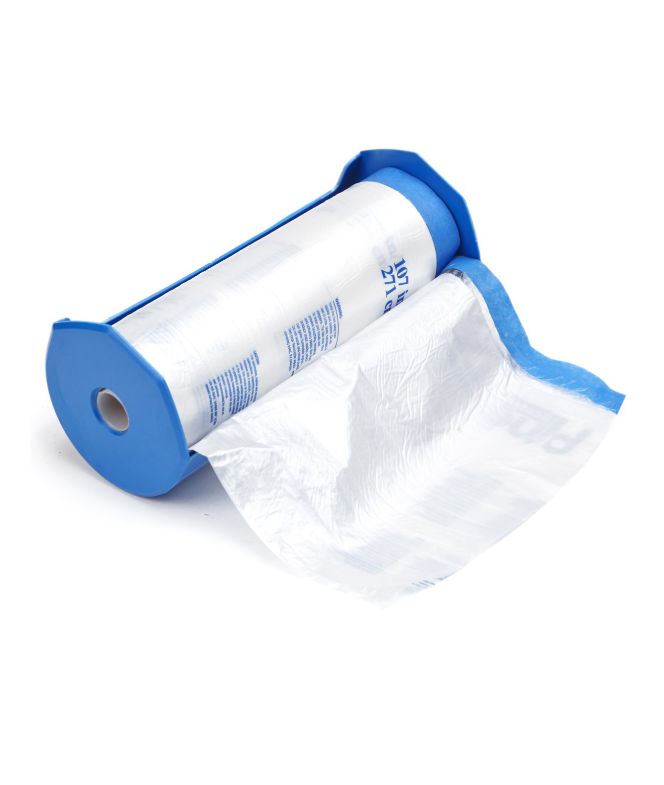 ScotchBlue™ Pre-Taped Plastic Holder for Painting is an easy-to-use tape holder where the advanced ScotchBlue™ masking tape (with sharp lines) and a protective mat of static plastic film have been combined into a single roll. The protective mat made of plastic film can be folded out to 60, 122, 182 or 270 cm. - Compact holder containing advanced ScotchBlue™ Masking Tape and integrated protective mat of static plastic film, providing extra precision and protection when painting. - Contains masking tape with 3M's advanced technology for razor-sharp paint lines. - Advanced masking tape that comes off without a trace within 21 days of application. - Static adhesion that allows the film to be easily positioned, adjusted and held in place. - Protects against accidental paint splashes, spills and drips. - The plastic cover folds out to a width of 60, 122, 182 or 270cm. - Easy to roll off and cut to the right length thanks to an integrated cutting blade.