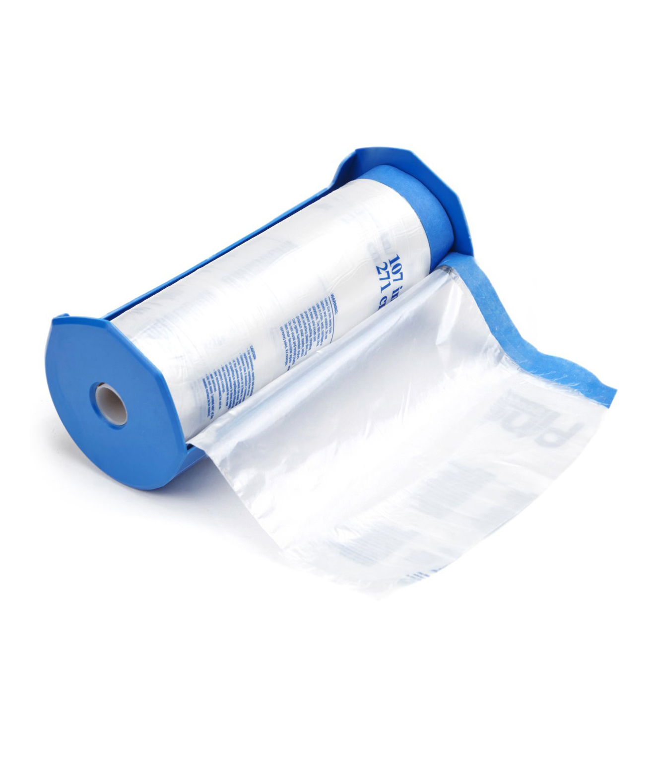 ScotchBlue™ Pre-Taped Plastic Holder for Painting is an easy-to-use tape holder where the advanced ScotchBlue™ masking tape (with sharp lines) and a protective mat of static plastic film have been combined into a single roll. The protective mat made of plastic film can be folded out to 60, 122, 182 or 270 cm. - Compact holder containing advanced ScotchBlue™ Masking Tape and integrated protective mat of static plastic film, providing extra precision and protection when painting. - Contains masking tape with 3M's advanced technology for razor-sharp paint lines. - Advanced masking tape that comes off without a trace within 21 days of application. - Static adhesion that allows the film to be easily positioned, adjusted and held in place. - Protects against accidental paint splashes, spills and drips. - The plastic cover folds out to a width of 60, 122, 182 or 270cm. - Easy to roll off and cut to the right length thanks to an integrated cutting blade.