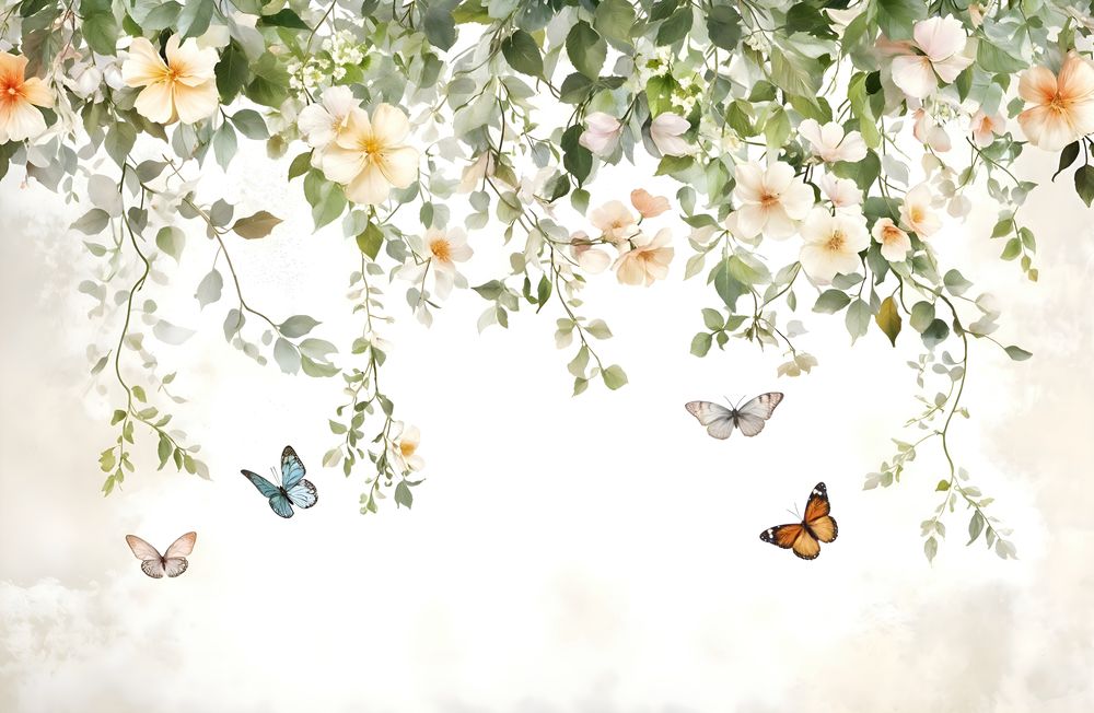 Butterflies and flowers wall mural is an affordable design wallpaper that you can easily custom order to suit your own needs. With a unique wall mural, you can easily create your dream wall. Feel free to complement it with a suitable colour from our wide range of indoor paints. By matching your wallpaper with one or a couple of suitable colours, you can create a truly delightful overall experience where your feature wall becomes the focal point.