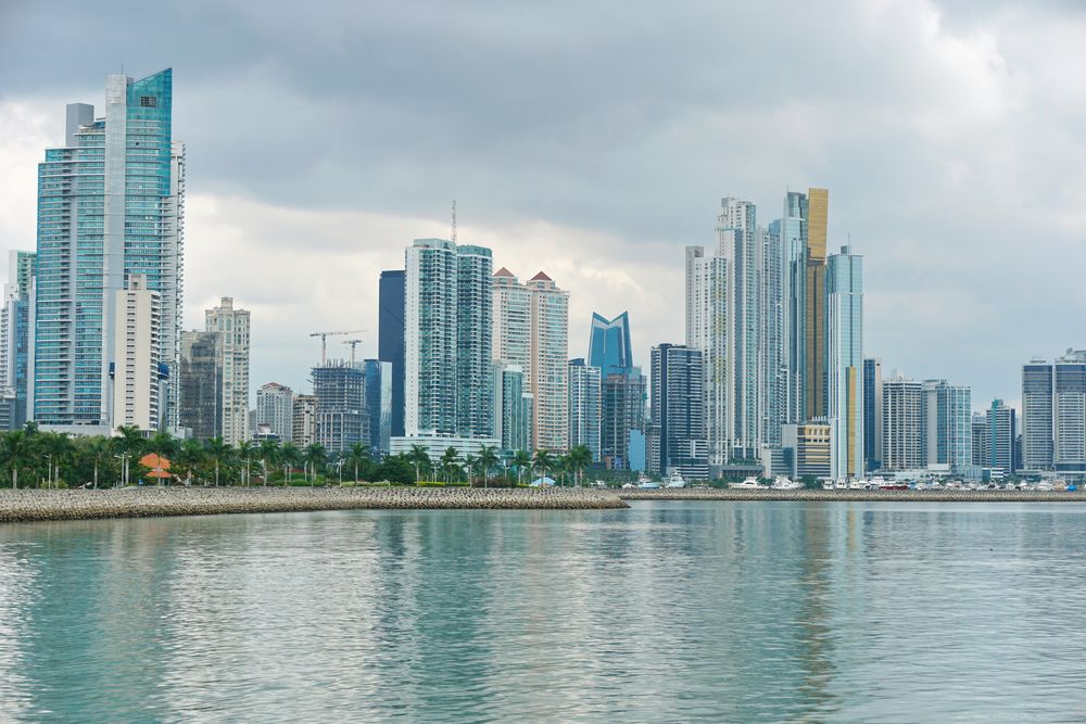 Coastline of Panama City with buildings on the oceanfront Pacific coast of Panama Central America