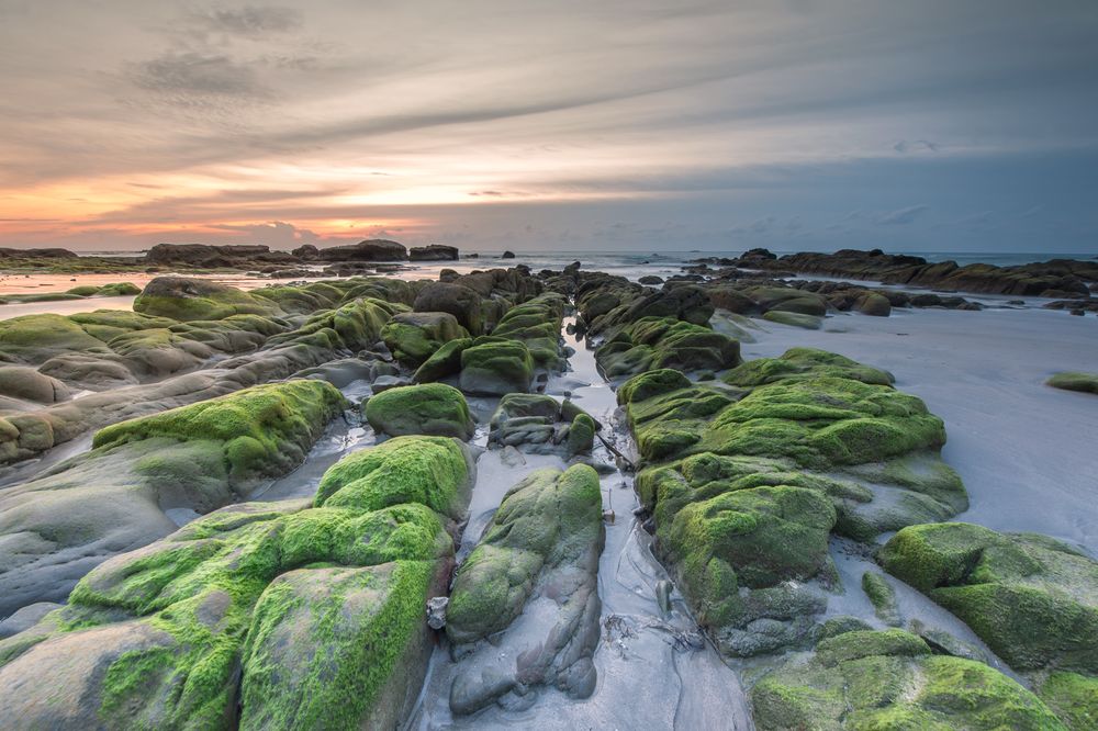 - Colorful sunset with natural coastal rocks Image contain soft focus due to long exposure: £29