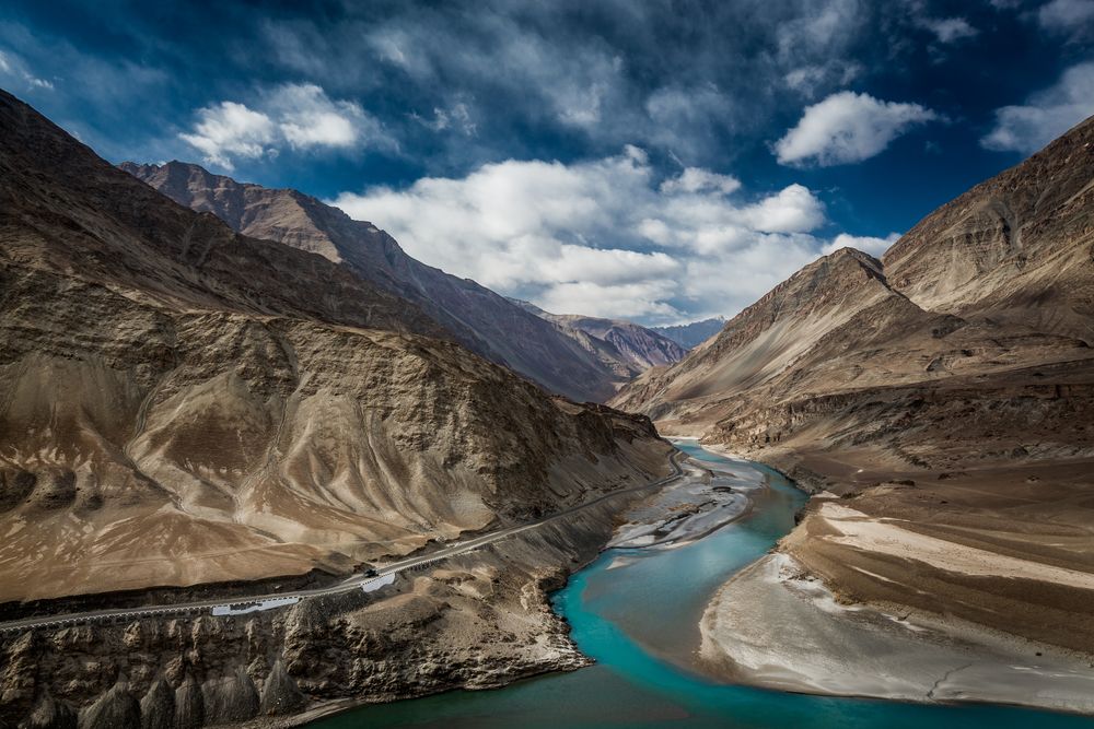 Confluence of Indus and Zanskar river at Nimu village in the Indian Himalaya Ladakh India