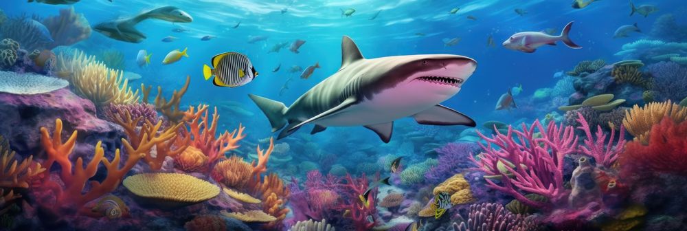 - Coral reef landscape and tiger shark: £29