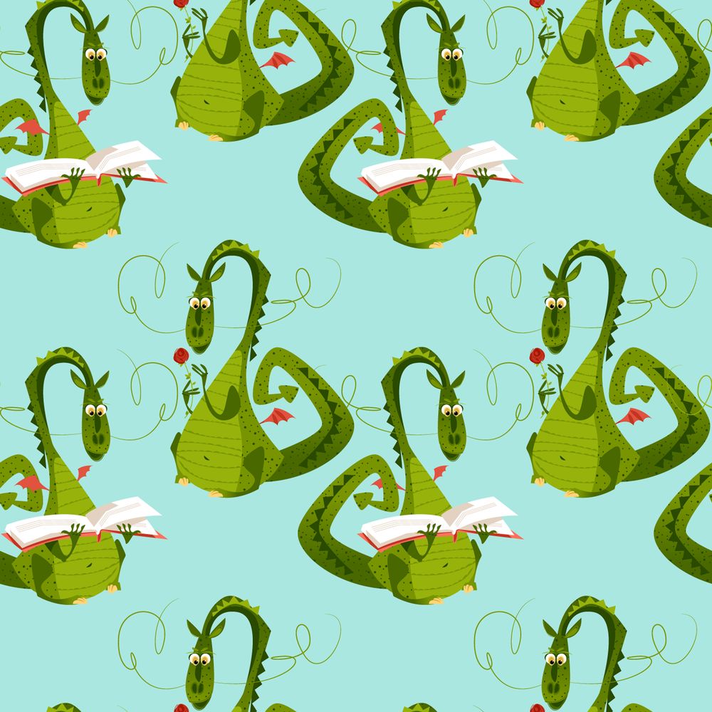- Dragons with a flower and a book Diada de Sant Jordi the Saint Georges Day Seamless background pattern: £29