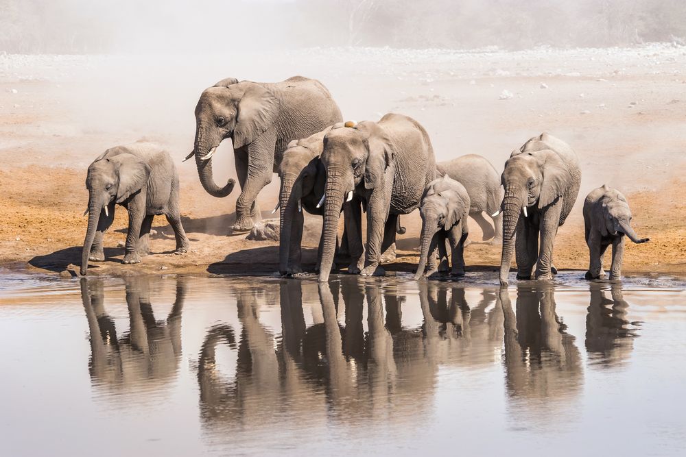 The Family of African elephants drinking at a waterhole in Etosha national park Namibia Africa photo wallpaper is an affordable design wallpaper that you can easily custom order to suit your own needs. With a unique photo wallpaper/mural, you can easily create your dream wall. Feel free to complement it with a suitable colour from our wide range of indoor paints. By matching your wallpaper with one or a couple of suitable colours, you can create a truly delightful overall experience where your feature wall becomes the focal point.