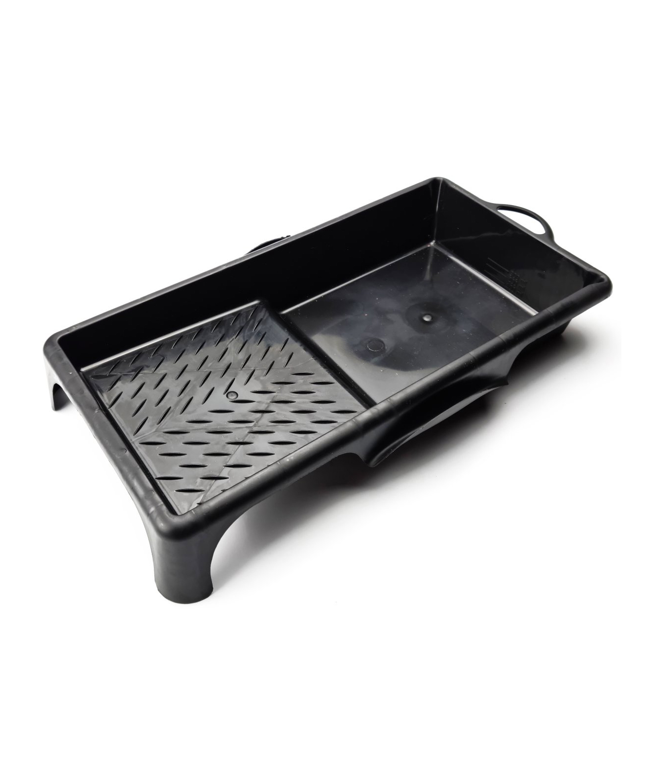 Grooved paint tray made of hard plastic. The paint trays hold a lot of paint. Stable plastic that does not bend during the painting work. Excellent tool for painting floors, walls, ceilings, wallpapering, 18 cm fits 18 cm rollers.