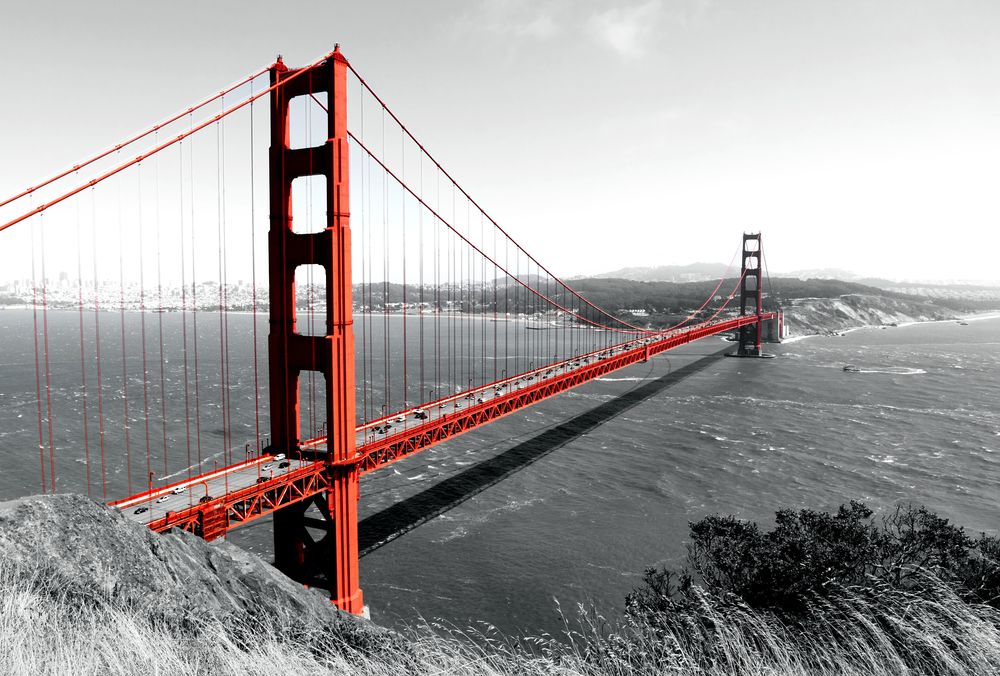 Golden Gate Bridge Red Pop on BW