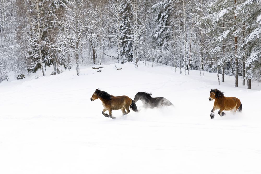 Horses Galloping in the Snow