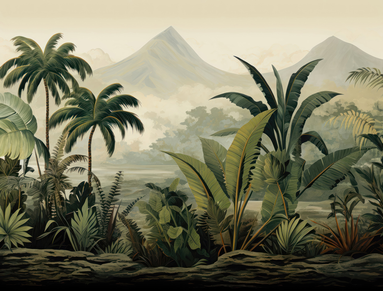 Jungle View wall mural is an affordable design wallpaper that you can easily custom order to suit your own needs. With a unique wall mural, you can easily create your dream wall. Feel free to complement it with a suitable colour from our wide range of indoor paints. By matching your wallpaper with one or a couple of suitable colours, you can create a truly delightful overall experience where your feature wall becomes the focal point.