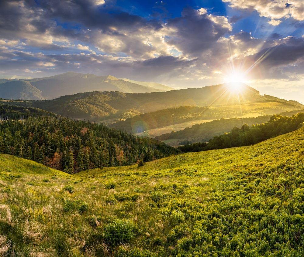 The Landscape with valley and forest in high mountains at sunset photo wallpaper is an affordable design wallpaper that you can easily custom order to suit your own needs. With a unique photo wallpaper/mural, you can easily create your dream wall. Feel free to complement it with a suitable colour from our wide range of indoor paints. By matching your wallpaper with one or a couple of suitable colours, you can create a truly delightful overall experience where your feature wall becomes the focal point.