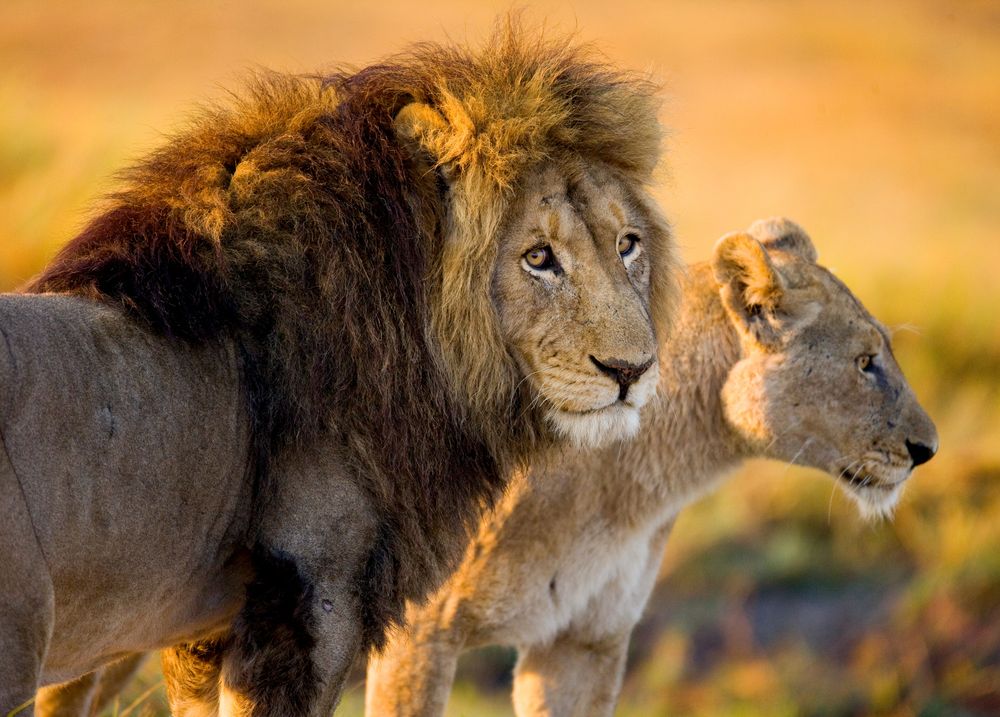 - Lion and lioness in the savannah Zambia: £29