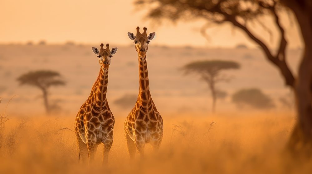 The Pair of giraffes standing in the savannah photo wallpaper is an affordable design wallpaper that you can easily custom order to suit your own needs. With a unique photo wallpaper/mural, you can easily create your dream wall. Feel free to complement it with a suitable colour from our wide range of indoor paints. By matching your wallpaper with one or a couple of suitable colours, you can create a truly delightful overall experience where your feature wall becomes the focal point.