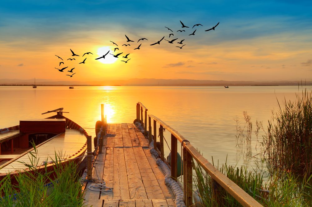 - Puesta de sol sobre un embardero tradicional de madera: £29
