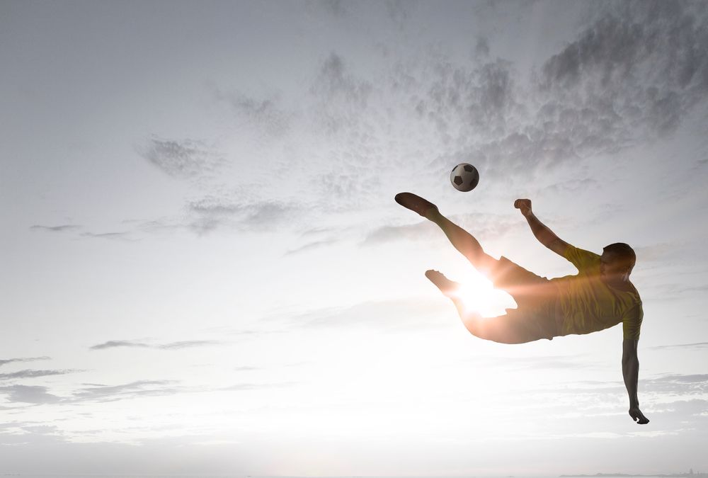 - Soccer player with ball outdoors: £29