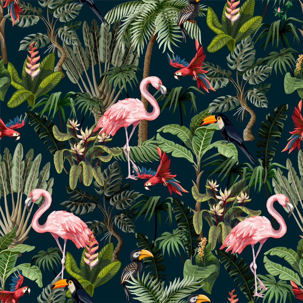 Tropical Birds in the Jungle wall mural is an affordable design wallpaper that you can easily custom order to suit your own needs. With a unique wall mural, you can easily create your dream wall. Feel free to complement it with a suitable colour from our wide range of indoor paints. By matching your wallpaper with one or a couple of suitable colours, you can create a truly delightful overall experience where your feature wall becomes the focal point.