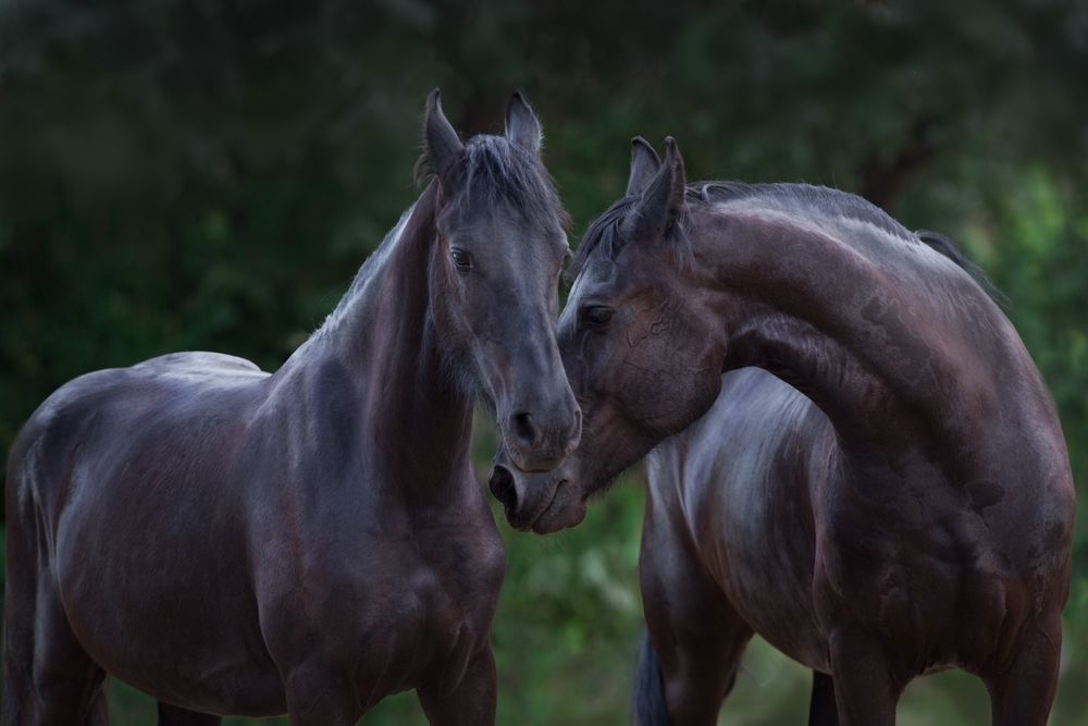 Two beautiful frisian horse portrait