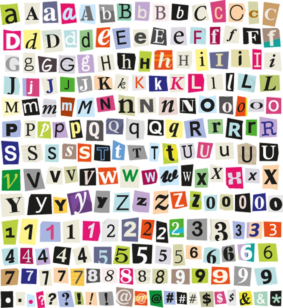 Vector Ransom Note- Cut Paper Letters Numbers Symbols