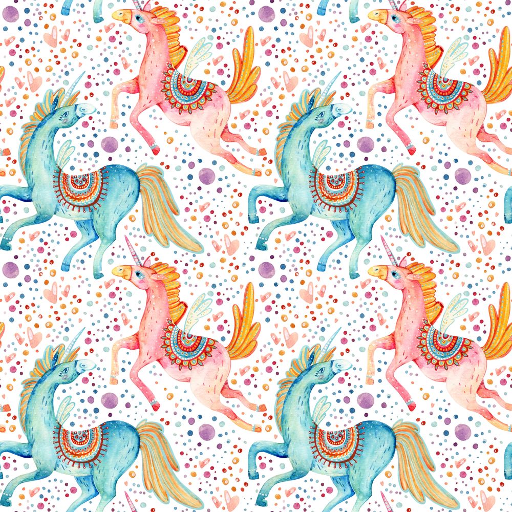 - Watercolor pair of flying unicorns seamless pattern on background with bubbles and hearts: £21.80