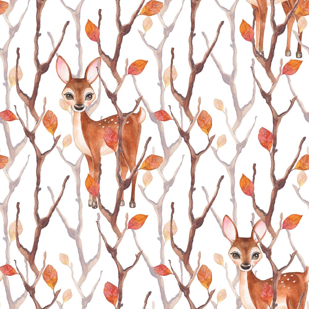 Watercolor seamless pattern with fawn and autumn forest Hand drawn background 1