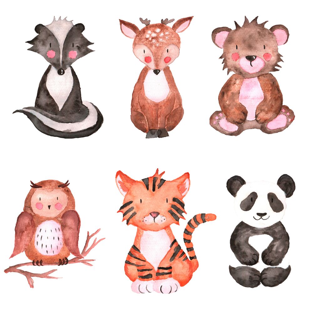 Woodland Animals Set of Watercolor Illustrations Hand-painted forest Cute baby